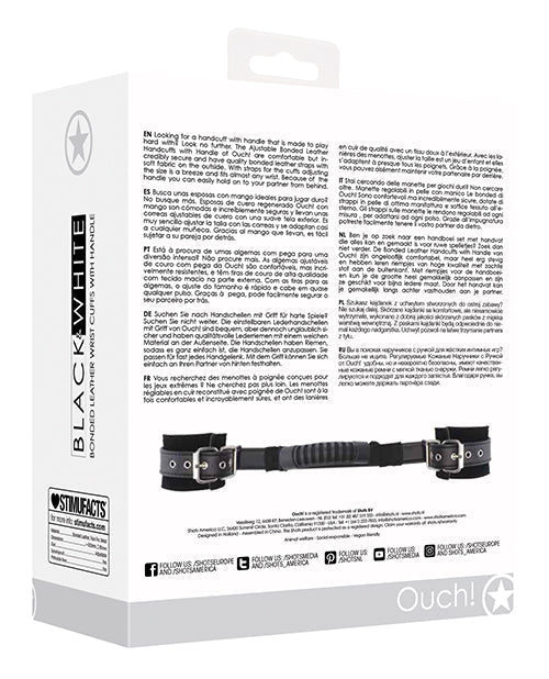 Shots Ouch Black & White Bonded Leather Hand Cuffs w/Handle - Black