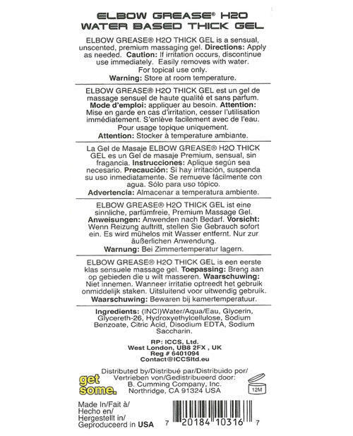Elbow Grease H2O Thick Gel - 8.5 oz