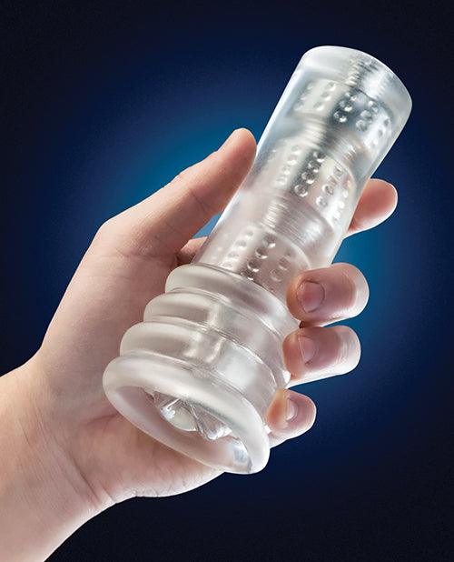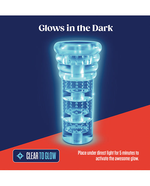 The RIZE! Luz is loaded with fun! This stroker is self-lubricating, just add a little water or saliva, and everything gets slippery. It also glows blue in the dark to add some excitement to your night! The Luz has soft ticklers for the ultimate feel and a ribbed inside for pressure point massage. Multiple chambers of suction create pleasurable stroking sensations. Super-soft and flexible, the Luz will fit any size shaft. It is free of phthalates, fragrances, paraffins, and latex.