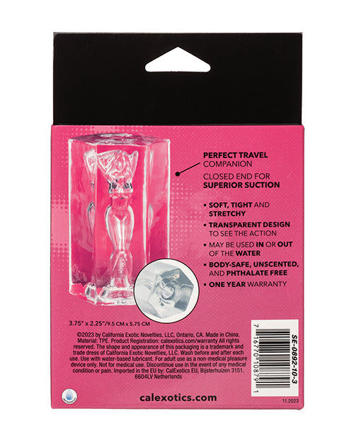 Designed as the perfect travel companion, this piece brings a sense of adventure and fun to any intimate moment. Its transparent design is not just stunning to look at but also allows you to immerse fully in the visual excitement of the action. The closed end intensifies the experience by creating superior suction, heightening your pleasure with every use.