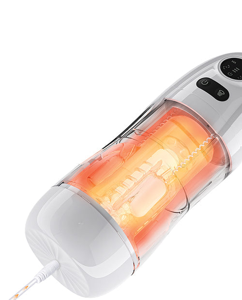 The screen display allows you to monitor and personalize your favorite masturbation settings, while the smart heating mode can heat up the tunnel for 4 minutes and switches off automatically, providing a realistic human-like touching pleasure and helping to dry the sleeve after cleaning.