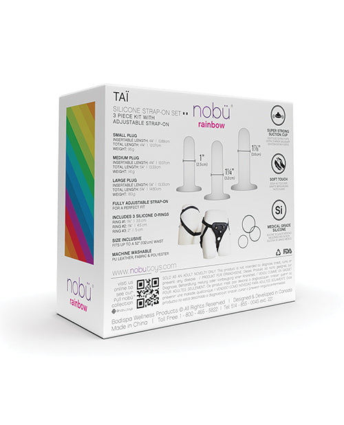 Nobu Tai Silicone Dildo Set w/Adjustable Strap On - 3 Piece Kit Assorted Colors