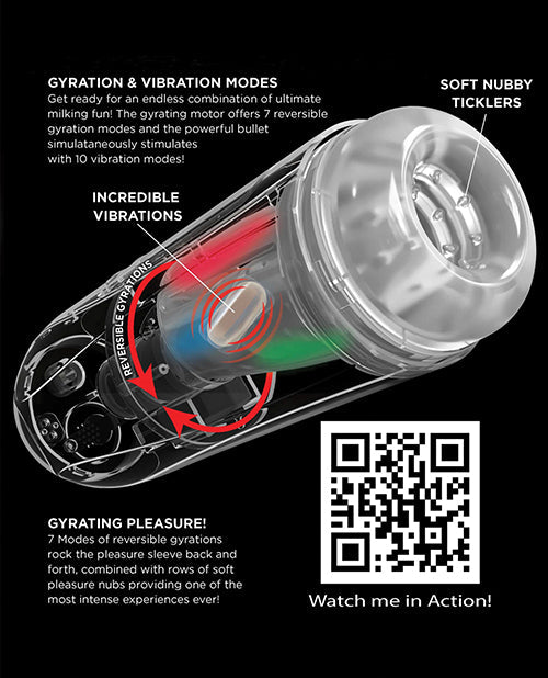 Introducing the first-of-its-kind milker masturbation technology designed to fully surround your shaft with vibrating, gyratory stimulation for the ultimate self-pleasure experience!