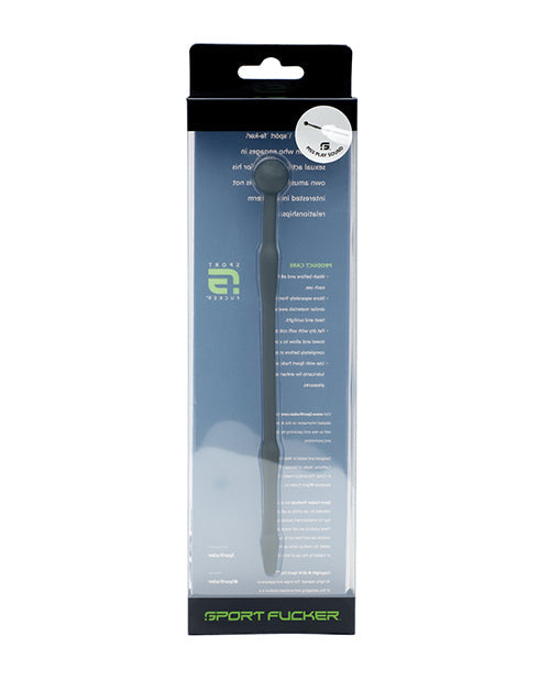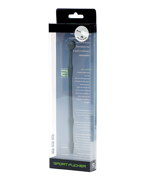 Sounding is quickly becoming one of the fastest growing fetishes among men. You already spend half of your free time rubbin' and tuggin' on your best appendage. Why not stimulate it from the inside? Not into traditional medical play? No problem. With our 100% medical grade premium silicone sounds, your best man and its urethra will thank you! All the metal benefits of an ultra-smooth surface and ability to sterilize without the cold, non-bending attributes of a traditional metal sound. Here's a plug to use with a friend........or on a friend! Do you or your friend have an overly cocky-cock which you'd like to tame? This sound will do it. With an insertable length of 7 ¼ inch, this hollow plug will run the entire length of the shaft and stay there ready and waiting for your load to shoot through. If you're used to shooting big explosive loads all over the place, get ready to be taken down a peg or two as you watch your massive load slowly dribble out the top. Your orgasm will feel twice as intense with this fucker in. But your man juice will just dribble out. The mind fuck of the slower cumming and more intense orgasm will blow your mind as you blow your load! Be sure to only use these great toys with sterile lube. Material: 100% medical grade premium silicone Dimensions Length: 18.415cm. (7 ¼ in.) Ball: 15.5mm. (.61 in.) Back two humps: 8.7mm. (.34 in.) First hump: 8.2 mm. (.32 in.) Internal hole: 3.5mm. (.14 in.)